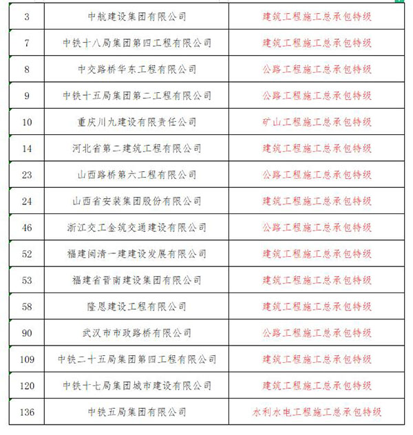 近日,住房城乡建设部发布关于核准2024年度第四批建设工程企业资质名单的公告。本批次建筑业企业共有136家,有 136项资质,其中,有16家成功晋升特级。